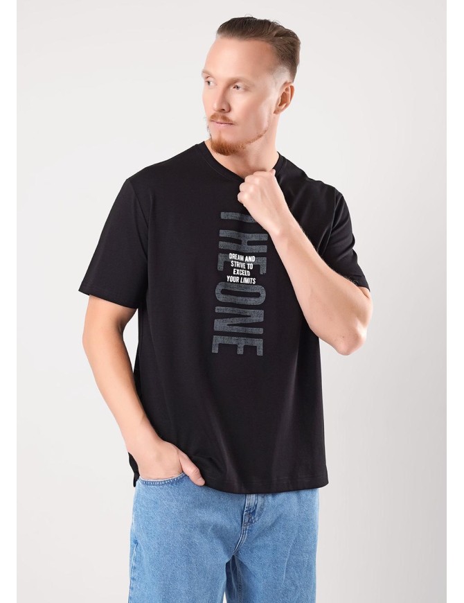 Футболка из трикотажного полотна. С коротким рукавом ,круглой горловиной, боковыми разрезами и удлиненной спинкой. Дополнена имиджевыми принтами. Отличный вариант для встреч с друзьями и прогулок .