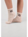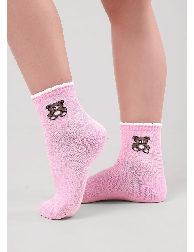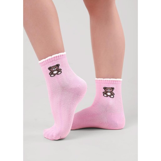 Облегченные носки для девочки , плетение сетка с рисунком мишки на паголенке