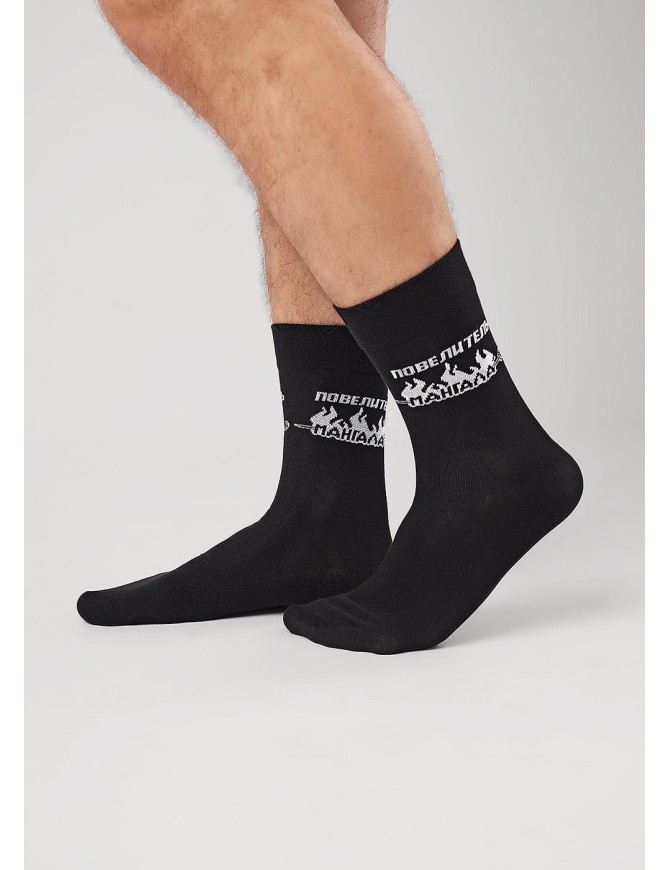 Мужские носки с рисунком и надписью Повелитель мангала.