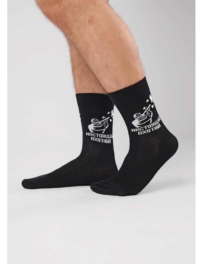 Мужские носки с рисунком и надписью "Настоящий охотник".