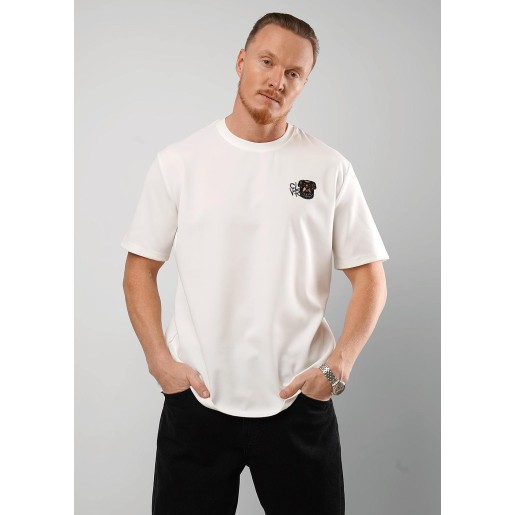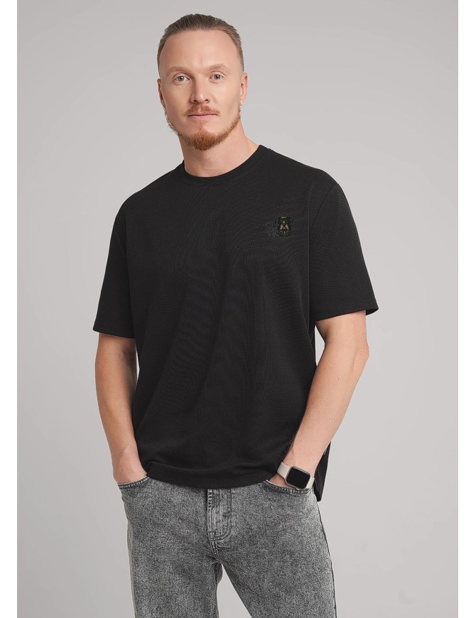 Стильная мужская футболка oversize из трикотажного фактурного полотна. Изделие со спущенной линией плеча, удлиненным рукавом, дополнено дизайнерской вышивкой. Модель создана для тех, кто ценит комфорт.