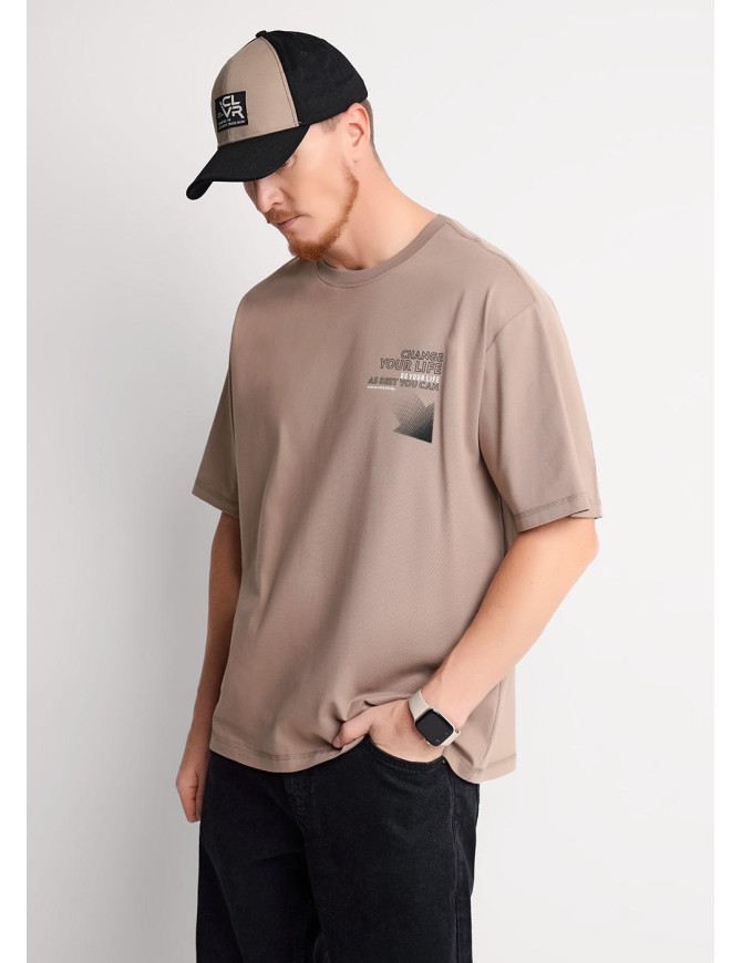 Футболка свободного кроя с круглым вырезом горловины и коротким рукавом. Модель выполнена из трикотажного полотна. Изделие дополнено дизайнерским принтом и отделочными строчками. Универсальная вещь мужского гардероба на каждый день.
