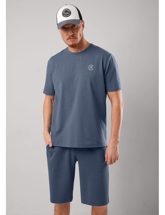 Футболка мужская увеличенного объема из хлопкового трикотажного полотна с круглым вырезом горловины и коротким втачным рукавом. Оригинальность изделию придает дизайнерский принт и имиджевая фурнитура. Отличный вариант для встреч с друзьями.