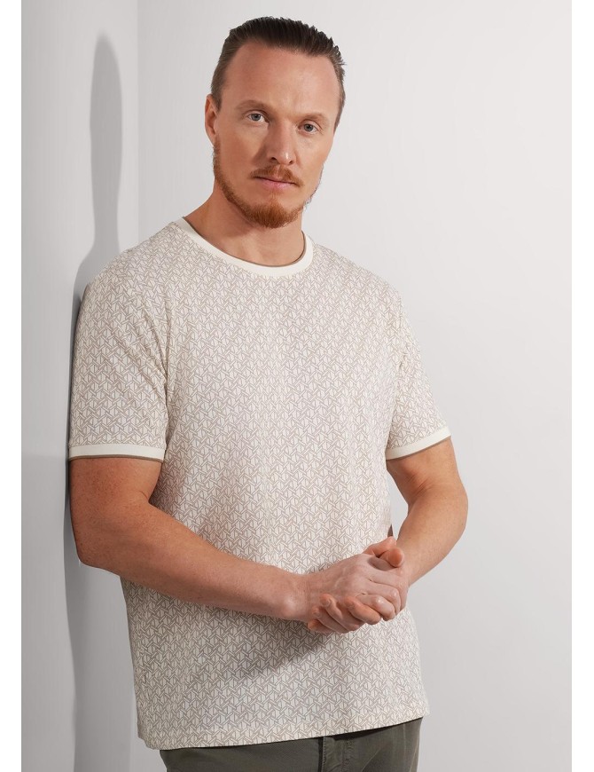 Футболка из фактурного трикотажного полотна "пике". Изделие с коротким рукавом и вязаными отделками. Модель можно дополнить брюками или джинсами. Отличный вариант для встреч с друзьями.
