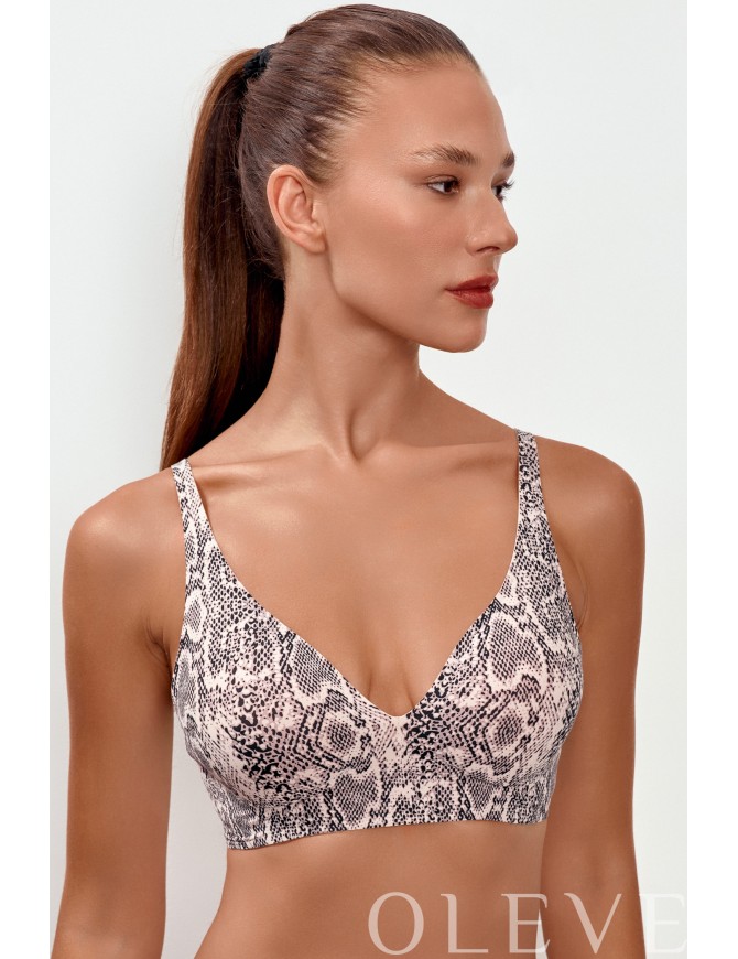 Бесшовный бюстгальтер из микрофибры с выраженной зоной декольте. Силиконовые вставки выполняют функции косточек. В комплекте съемные латексные вкладыши.