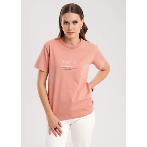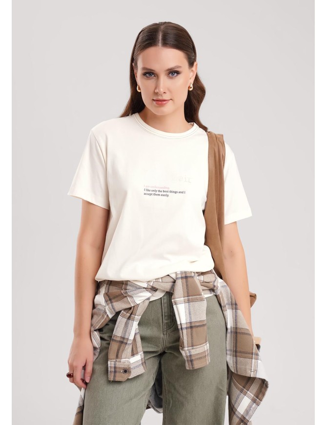 Футболка прямого кроя из хлопкового трикотажного полотна. Короткий втачной рукав. Округлая горловина с обтачкой. Спереди принт с вышивкой.