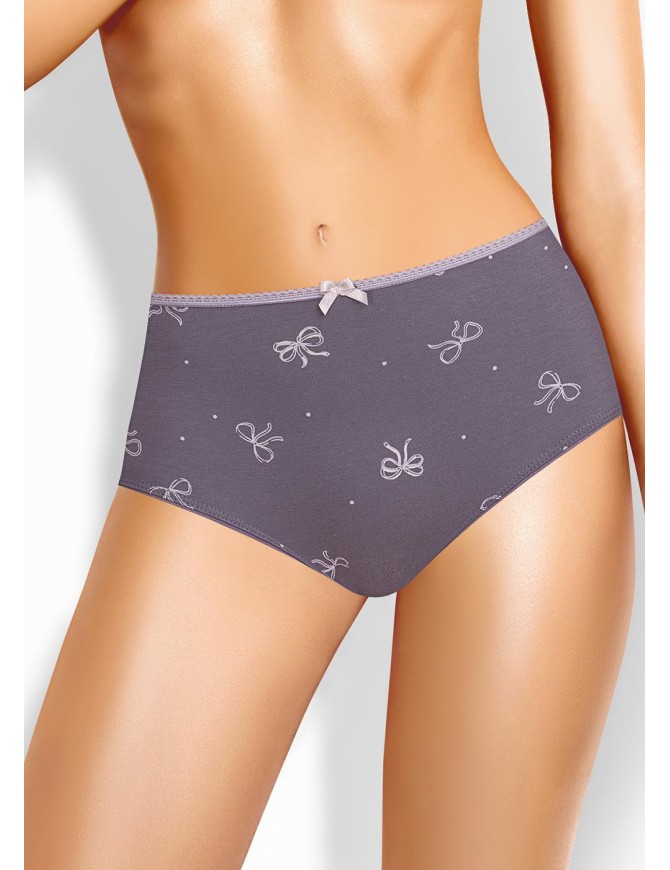 Трусы макси женские из эластичного хлопкового полотна. Обработка краев по талии - ажурная резинка, по ноге - полуокантовка. По переду атласный бант.