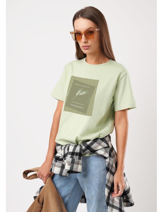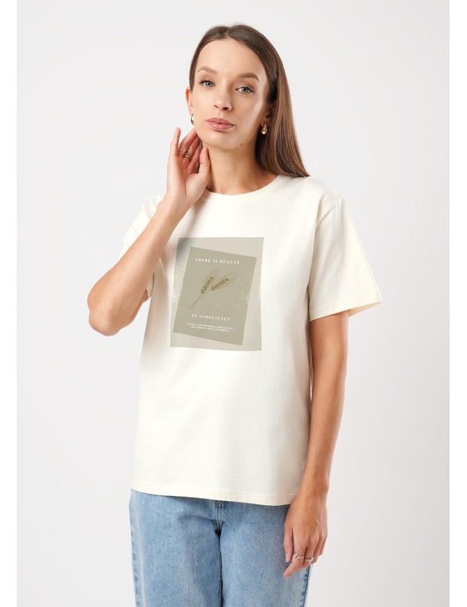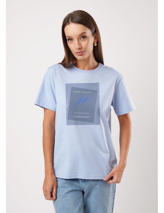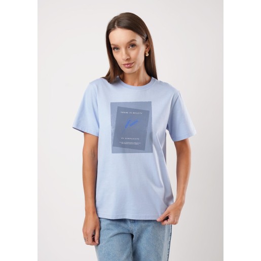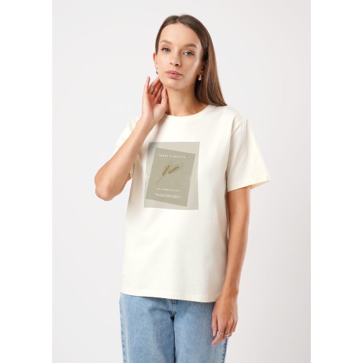 Футболка из хлопкового трикотажного полотна. Округлая горловина с обтачкой. Короткий втачной рукав. Спереди принт с вышивкой.