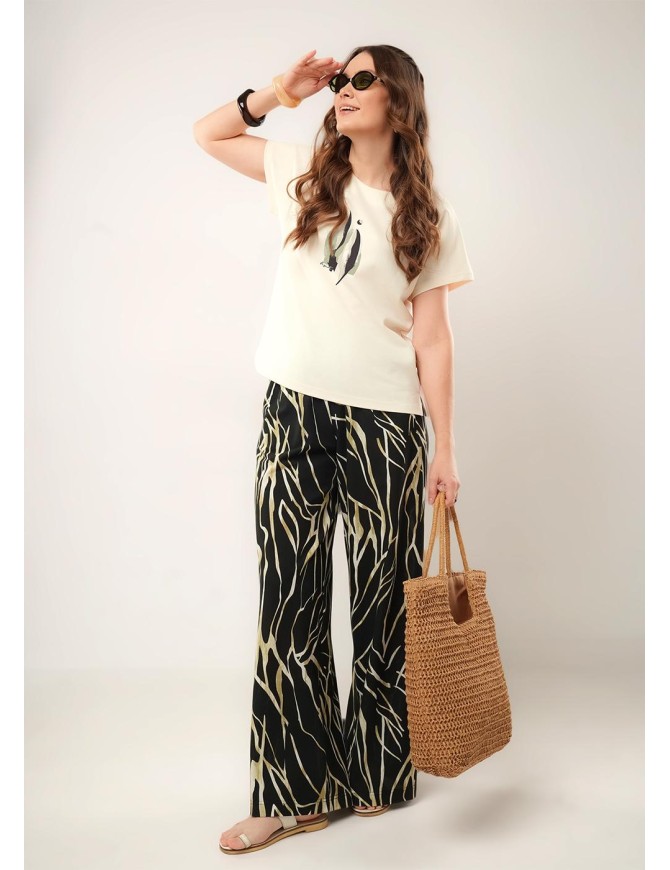 Брюки широкие из трикотажного полотна пике. По талии притачной пояс на внутренней резинке. Боковые карманы с отрезным бочком.